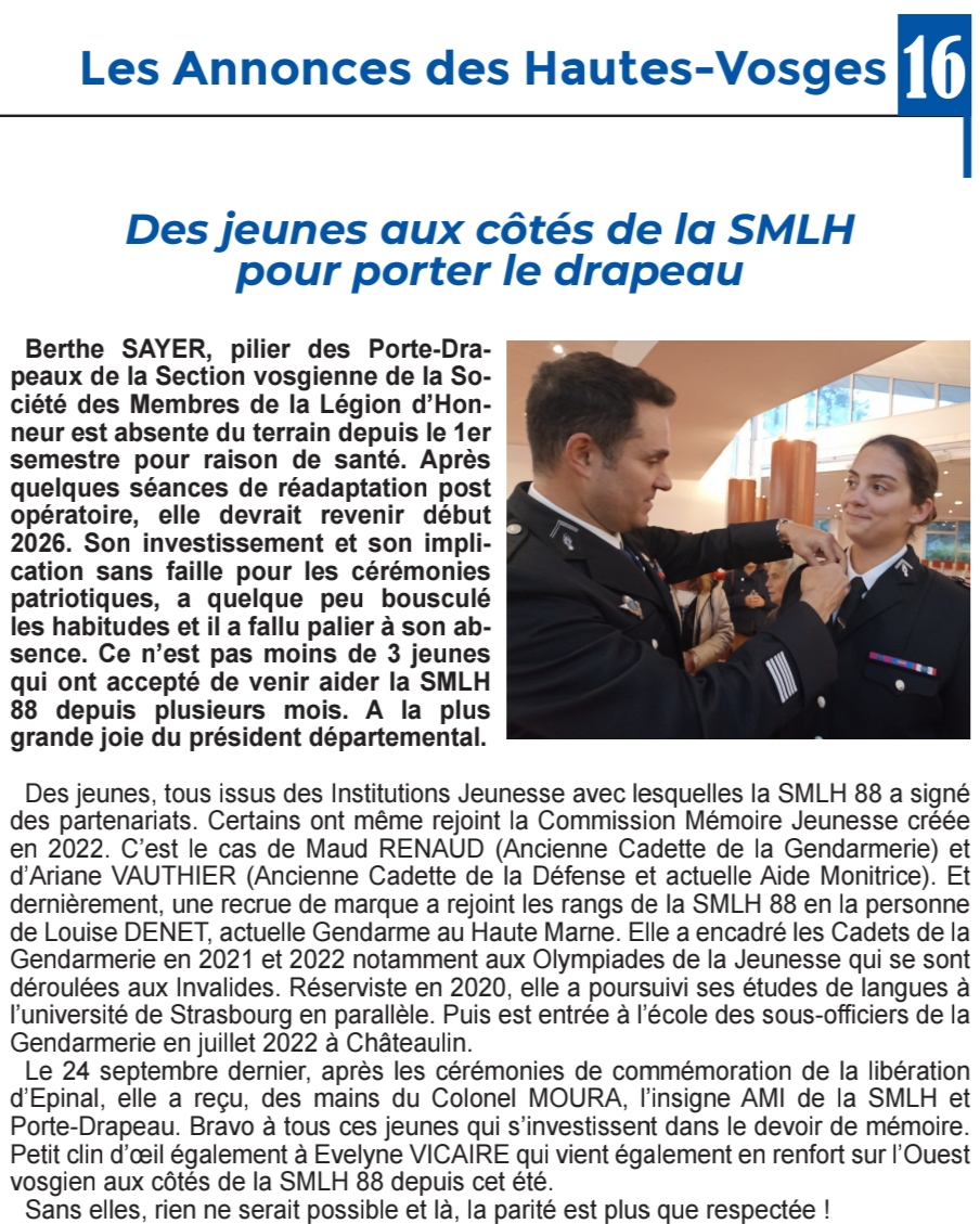 2025 9 oct Ces nouvelles jeunes porte drapeau de la SMLH 88