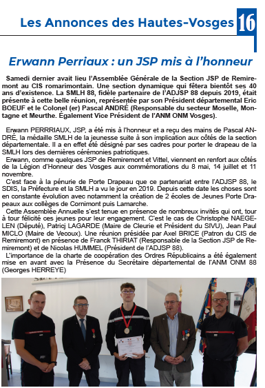 2024 4 janv L'honneur en Action la SMLH88 récompensé